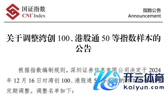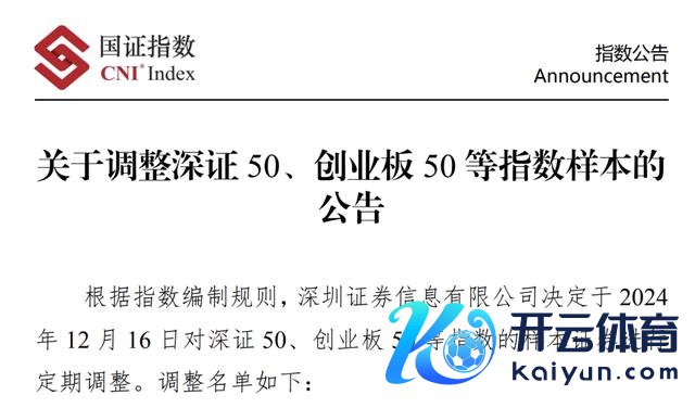 12月2日,深交所过火全资子公司深圳证券信息有限公司发布公告,将把柄指数编制限定,概述考量深市公司的市值代表性、证券流动性、筹画合规情况等要素,对深证成指、创业板指、深证100指数(以下统称“深市中枢指数”)样本股进行依期调整。本次调整于12月16日持重现实。