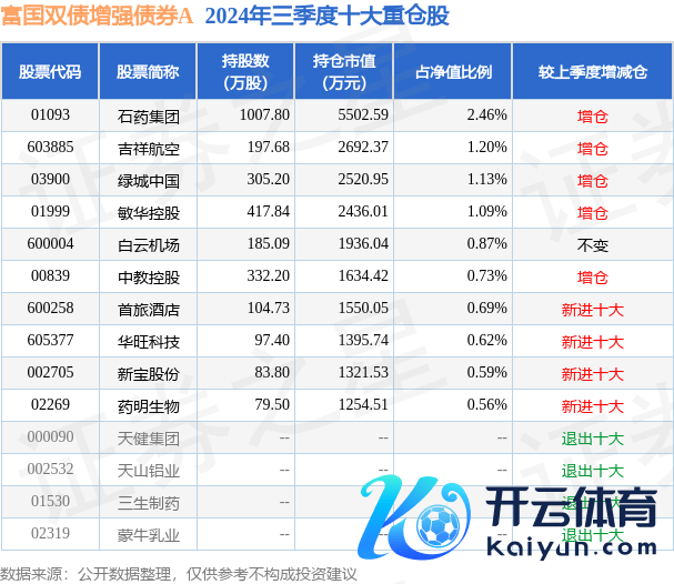 富国双债增强债券A为债券型-搀和二级基金,凭证最新一期基金季报知道,该基金钞票树立:股票占净值比20.42%,债券占净值比85.71%,现款占净值比2.79%。基金十大重仓股如下: