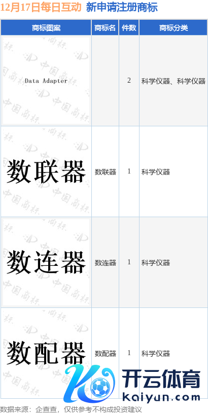 本站音信,阐明企查查数据清楚,近日逐日互动股份有限公司新提交“数配器”、“数连器”等5件商标注册请求。商标请求细目如下: