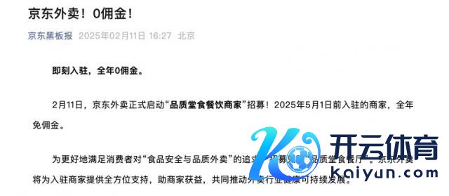 2 月 11 日,京东外卖矜重启动"品性堂食餐饮商家"招募!2025 年 5 月 1 日前入驻的商家,全年免佣金。