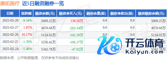 康拓医疗融资融券信息泄露,融资方面,当日融资买入712.78万元,融资偿还574.22万元,融资净买入138.56万元。融券方面,融券卖出0.0股,融券偿还0.0股,融券余量0.0股,融券余额0.0万元。融资融券余额5009.25万元。