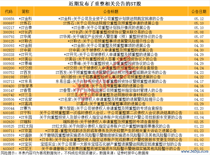 资产重组、停业重组的ST股曝光