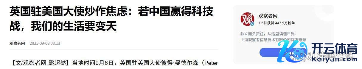 信息源头:英国驻好意思国大使炒作惊惶:若中国获取科技战开云体育,咱们的糊口要变天 不雅察者网2025-09-08 08:13